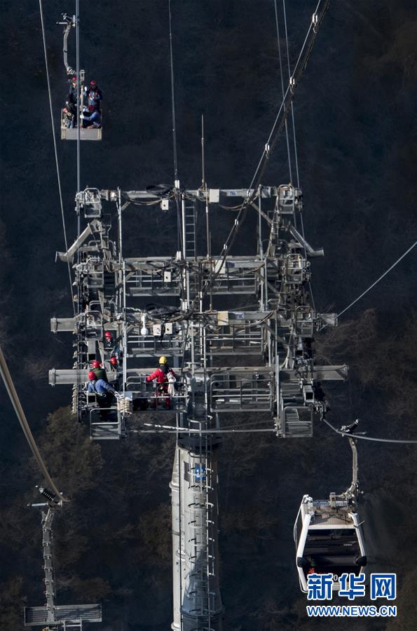 華山太華索道維修人員對(duì)索道支架及鋼絲繩進(jìn)行檢測(12月6日攝)。新華社記者陶明攝