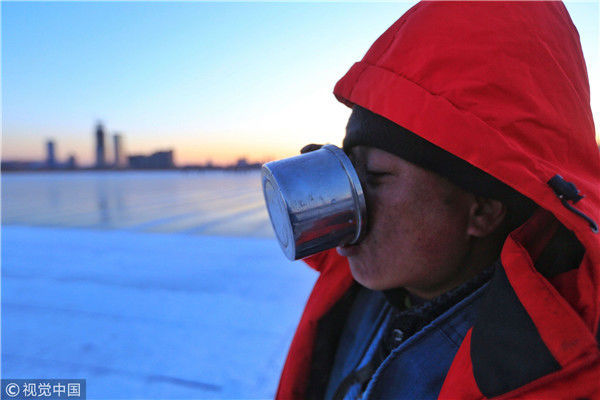 寒冬采冰人:起早貪黑 “淘金”冰雪