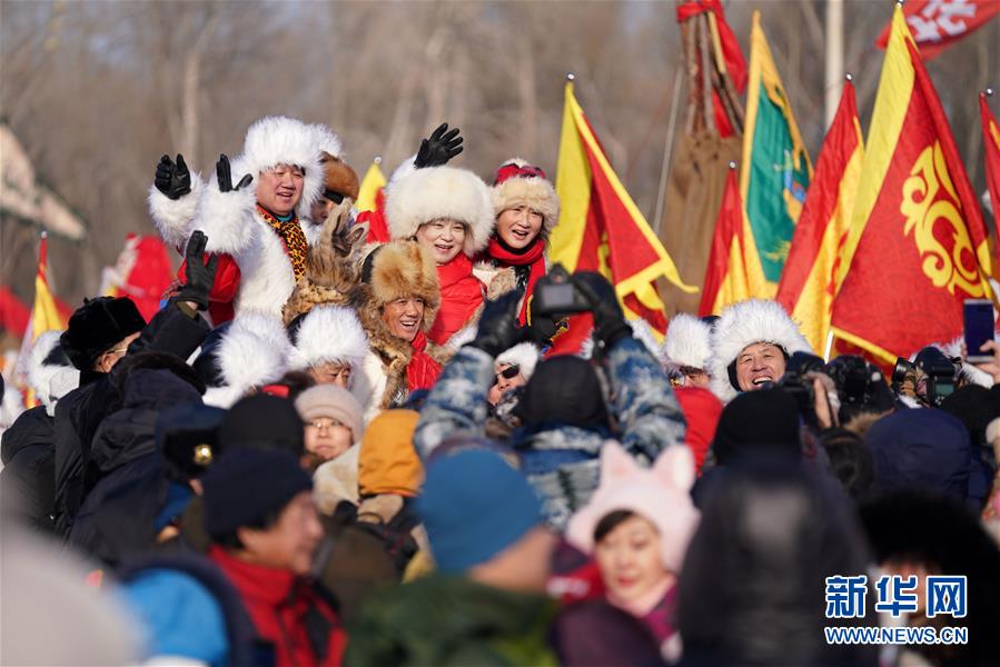 12月7日,人們在采冰節(jié)現(xiàn)場合影留念。當(dāng)日,哈爾濱采冰節(jié)在冰封雪覆的松花江哈爾濱段江面上開幕,精彩的采冰儀式和表演吸引了眾多冰城市民和游客前來欣賞、互動。新華社記者王建威攝