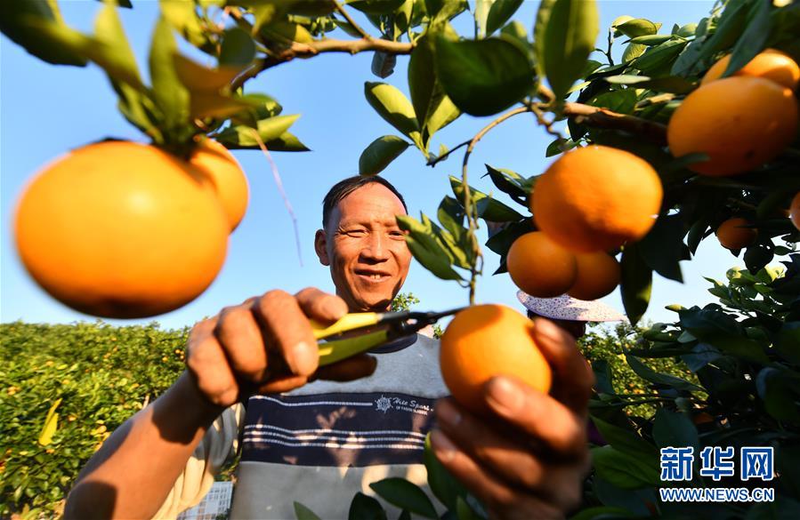 12月10日,廣西柳州市鹿寨縣鹿寨鎮(zhèn)石路村村民在果園里采收蜜橙。新華社記者 黃孝邦 攝