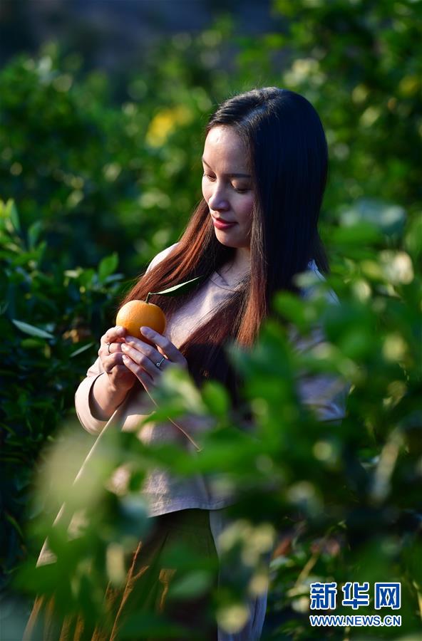 李柳萍在果園里拍攝鹿寨蜜橙宣傳片(12月12日攝)。新華社記者黃孝邦攝