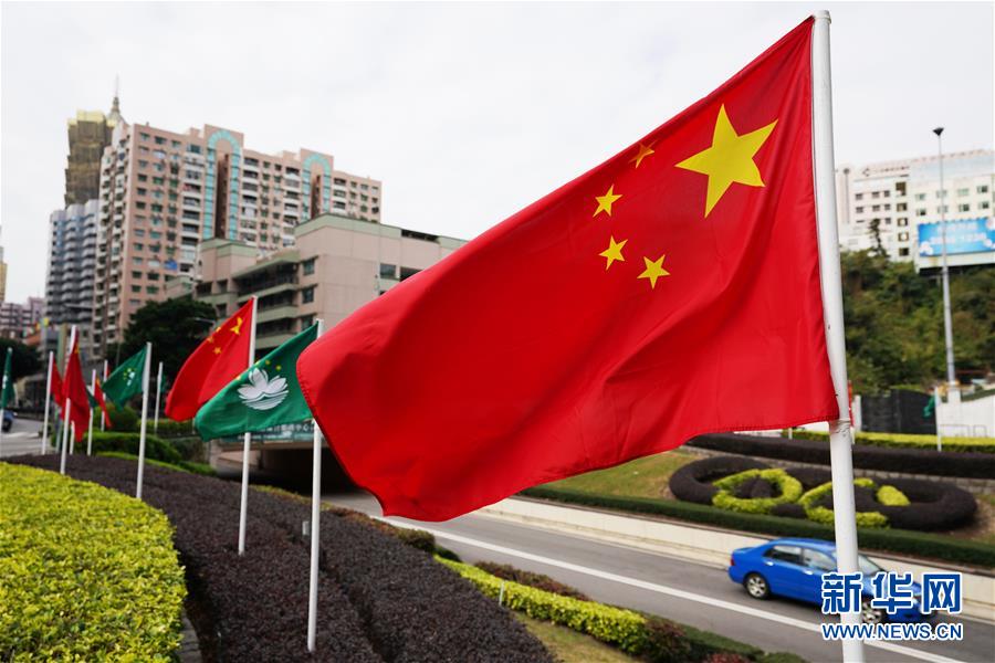 12月17日,在澳門(mén)街頭,國(guó)旗和區(qū)旗迎風(fēng)飄揚(yáng)。