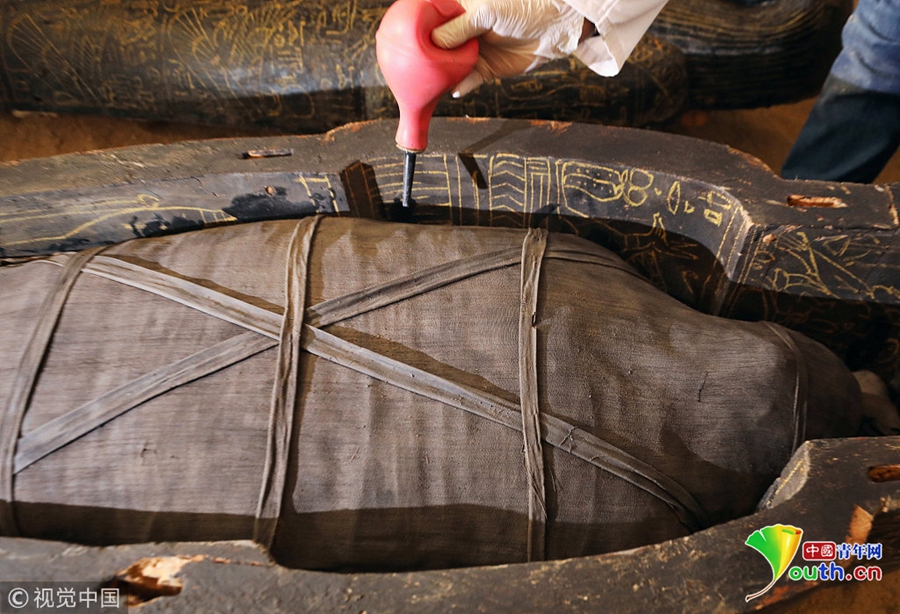當(dāng)?shù)貢r(shí)間2018年11月24日,埃及盧克索,考古學(xué)家在當(dāng)?shù)匕l(fā)掘出一處墓穴,在其中發(fā)現(xiàn)石棺、木乃伊等文物,時(shí)間可追溯至公元前4-7世紀(jì)。