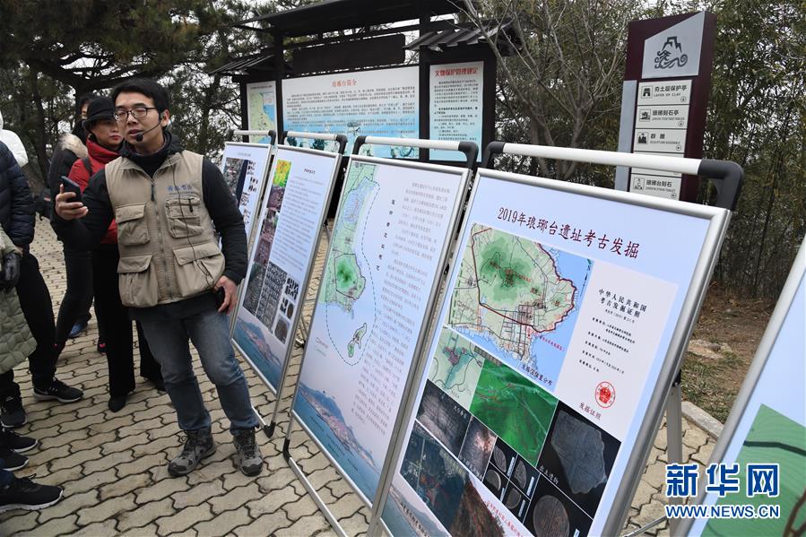 考古隊員彭峪在介紹瑯琊臺遺址考古發(fā)掘的進展(12月21日攝)。新華社記者李紫恒攝