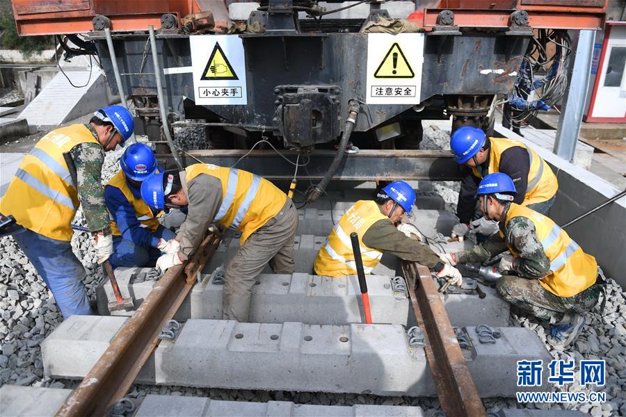 12月22日,中鐵二十四局工作人員在平潭海峽公鐵大橋鋪軌施工現(xiàn)場進行鋪軌作業(yè)。新華社記者林善傳攝