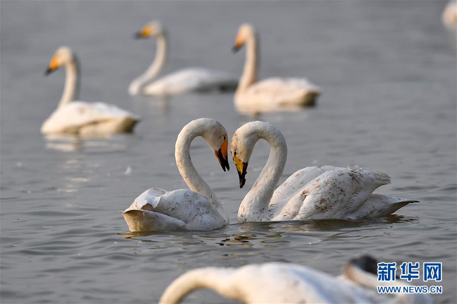 12月13日,白天鵝在山西平陸黃河濕地棲息。 連日來,眾多白天鵝飛臨山西平陸黃河濕地越冬。 占地6000多公頃的山西平陸黃河濕地位于山西、河南兩省交界處,這里氣候溫和,采食豐富,非常適宜白天鵝越冬。每年秋末冬初,白天鵝都會從遙遠的西伯利亞來到這里棲息越冬。 新華社記者 詹彥 攝