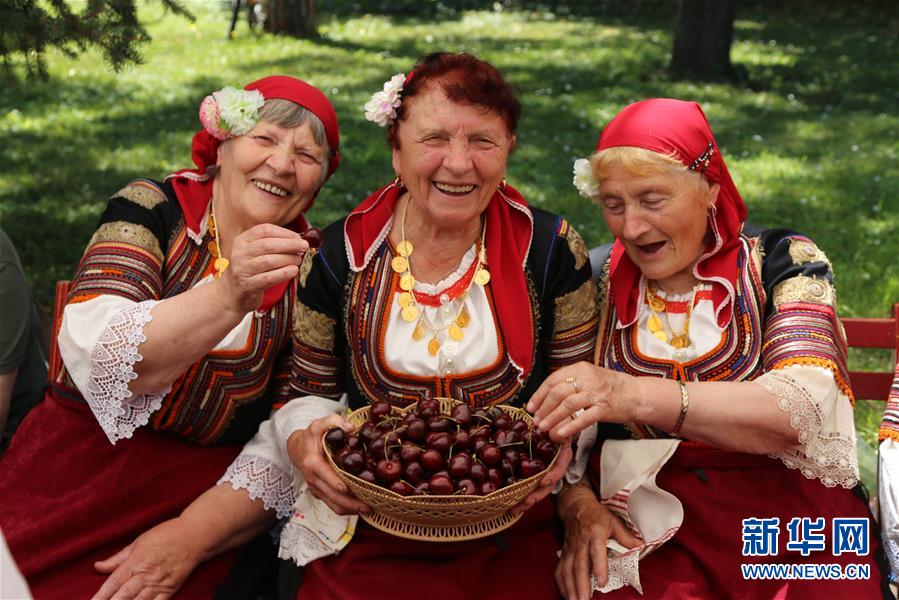 2019年6月22日,在保加利亞丘斯滕迪爾的櫻桃節(jié)上,果農向游人展示櫻桃。丘斯滕迪爾位于保加利亞西部,距首都索非亞約100公里,是保加利亞櫻桃主產地之一,當?shù)禺a的櫻桃以顆粒飽滿、甜度高、品種多且口感好而聞名。 新華社記者 戰(zhàn)小漪 攝