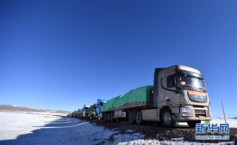 12月23日拍攝的西藏那曲市雙湖縣牧民的遷徙車隊。新華社記者覺果攝
