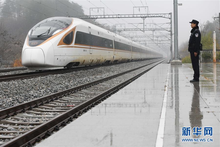 12月18日,常曉龍?jiān)诙樟x堂站接車。新華社記者張端攝