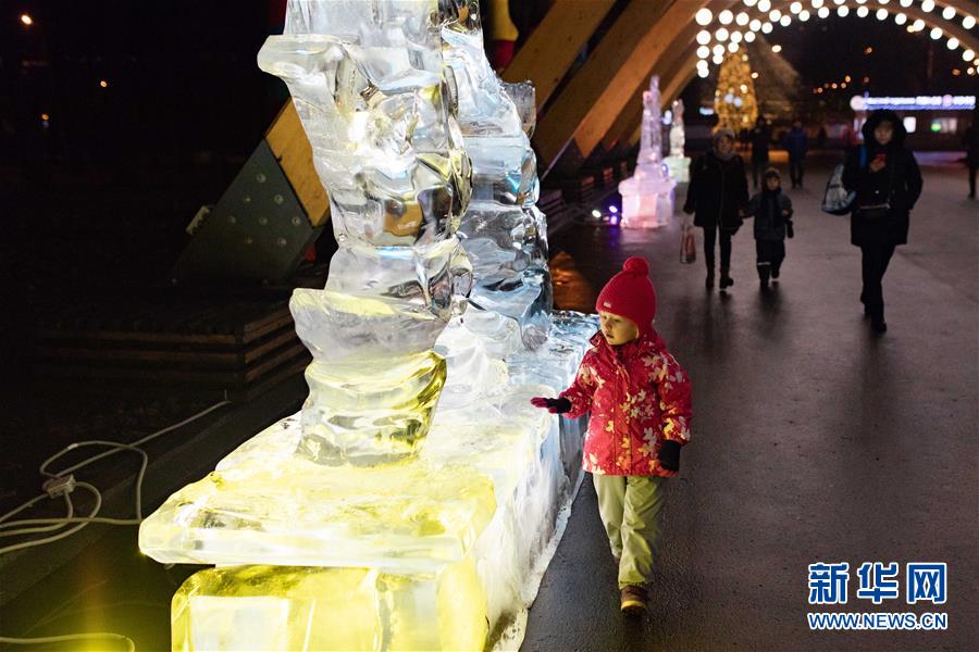 12月24日,在俄羅斯首都莫斯科,小朋友參觀冰雕藝術(shù)展。 哈爾濱冰雕藝術(shù)展24日在莫斯科開幕,現(xiàn)場展出了哈爾濱大劇院、防洪紀(jì)念塔以及莫斯科紅場建筑群等惟妙惟肖的冰雕作品,吸引眾多游客駐足拍照。 參加本次冰雕藝術(shù)展的十名冰雕師提前抵達(dá)莫斯科,以新中國成立70周年、中俄建交70周年、“一帶一路”倡議等為主題,為莫斯科民眾奉上了精美的新年禮物。 新華社記者 白雪騏 攝