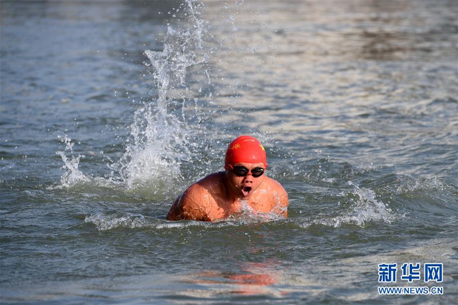 12月18日,冬泳愛好者趙西普在黃河冬泳。新華社記者陳斌攝