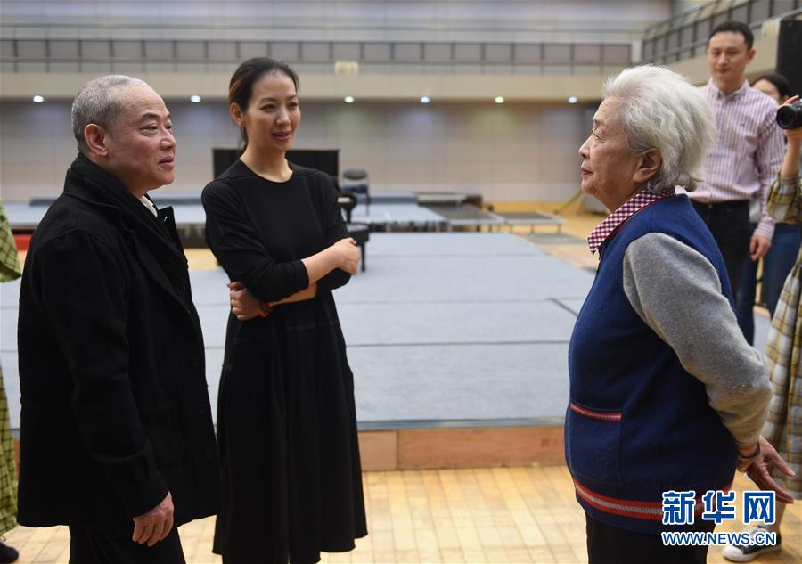 12月26日,電影《早春二月》中“陶嵐”的扮演者、老一代電影藝術(shù)家謝芳(右一)來到話劇《二月》探班現(xiàn)場(chǎng),與李六乙導(dǎo)演(左一)和話劇《二月》中“陶嵐”的扮演者盧芳(左二)交流。 新華社記者 羅曉光 攝