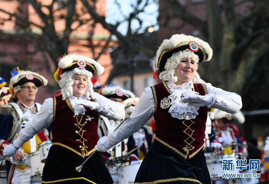 1月1日,在德國(guó)美因茨,人們參加新年游行活動(dòng)。新華社記者逯陽(yáng)攝