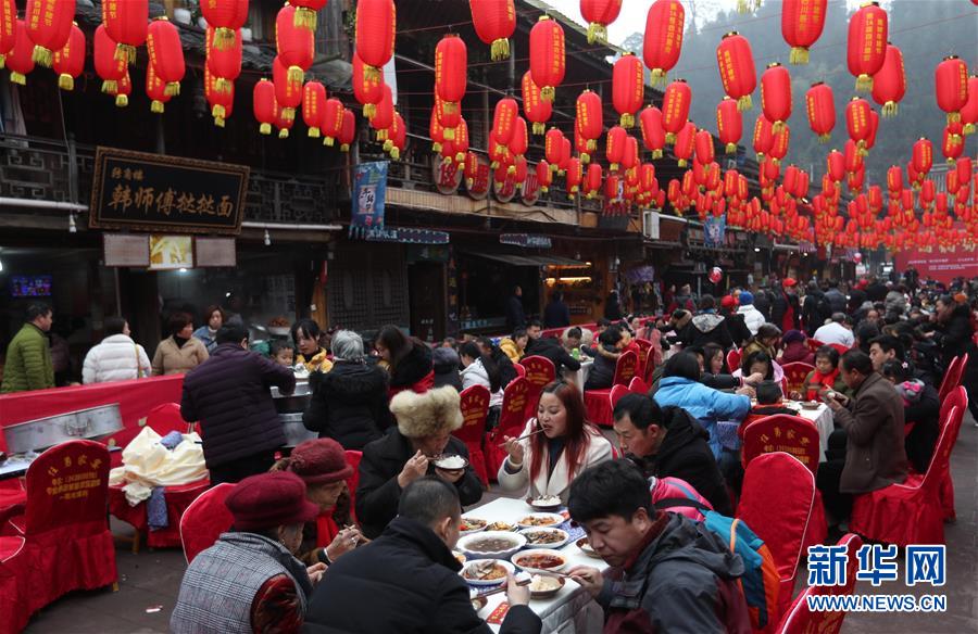 1月1日,在四川省雅安市上里古鎮(zhèn),人們在享用年豬宴。新華社記者 江宏景 攝
