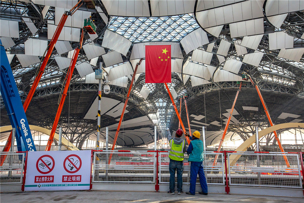 2018年10月30日,北京,大興新機(jī)場的建設(shè)者。周錦/視覺中國
