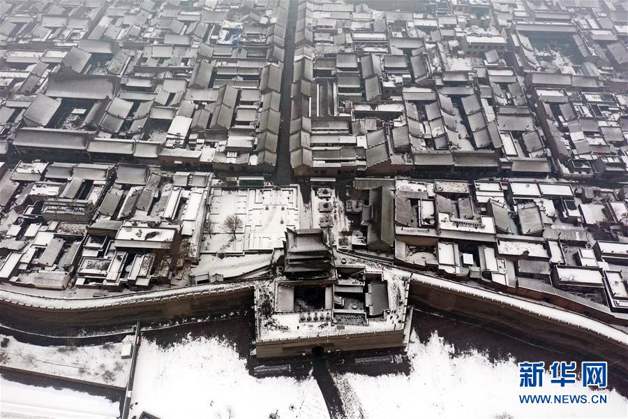 當(dāng)日,山西省平遙縣迎來降雪,雪中的平遙古城銀裝素裹,美景如畫。平遙古城是目前中國(guó)保存最完整的古代縣級(jí)城池之一,1997年被列入世界文化遺產(chǎn)名錄。