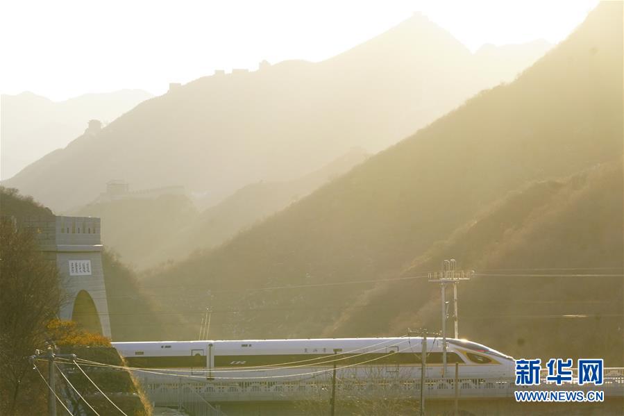 2019年12月30日,G2418次列車駛過居庸關(guān)長城。當日,北京至張家口高速鐵路開通運營。 新華社記者 邢廣利 攝