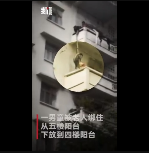 險!老太用繩子綁孫子從5樓吊至3樓救貓 網(wǎng)友:孫子是買貓送的?