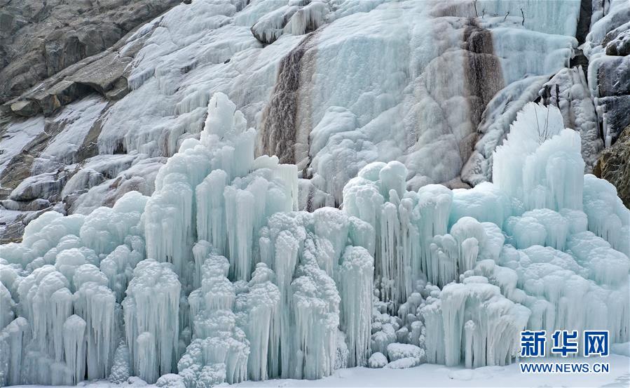 這是1月7日拍攝的賀蘭山巖畫景區(qū)內的冰瀑景觀(無人機照片)。 新華社記者 王鵬 攝