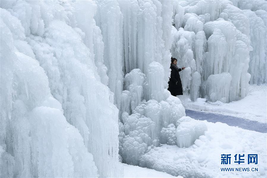 這是1月7日拍攝的賀蘭山巖畫景區(qū)內(nèi)的冰瀑景觀。 新華社記者 王鵬 攝