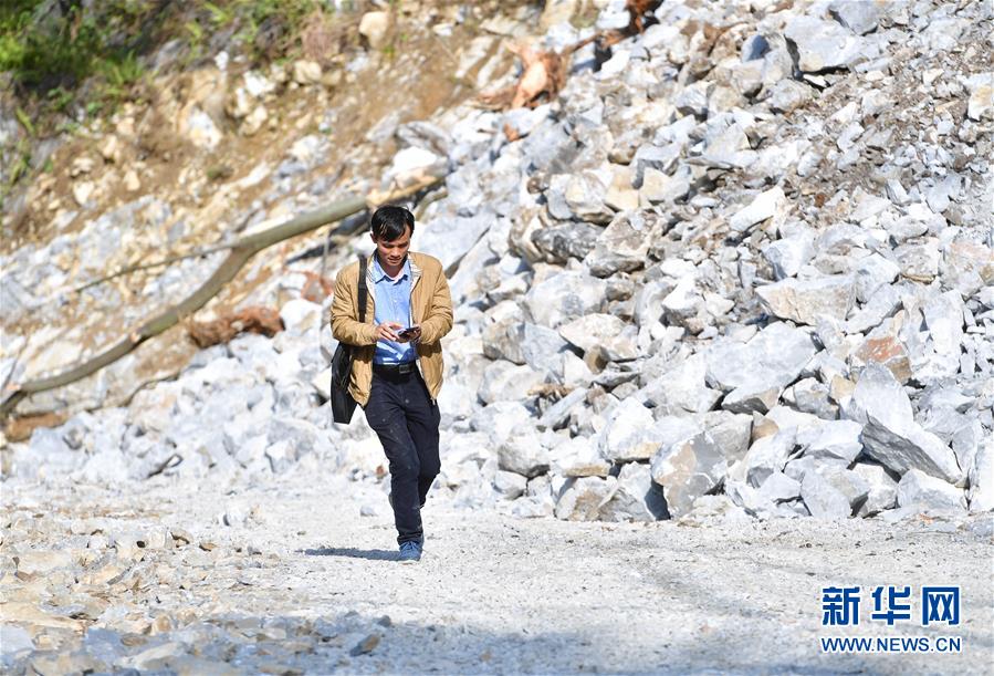 八好村駐村第一書(shū)記韋德王徒步前往群眾家中,開(kāi)展扶貧工作(2019年12月16日攝)。新華社記者黃孝邦攝