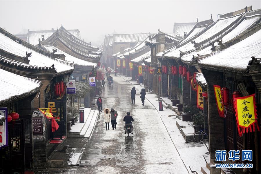 1月5日,游人在平遙古城內(nèi)游覽。新華社記者詹彥攝