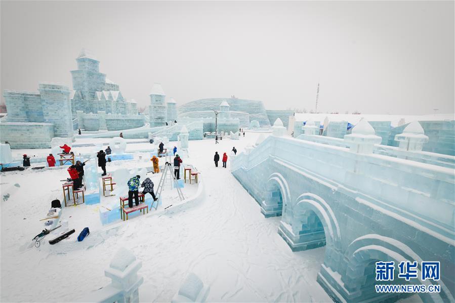 1月7日,參賽者在進(jìn)行冰雕創(chuàng)作。新華社記者王松攝