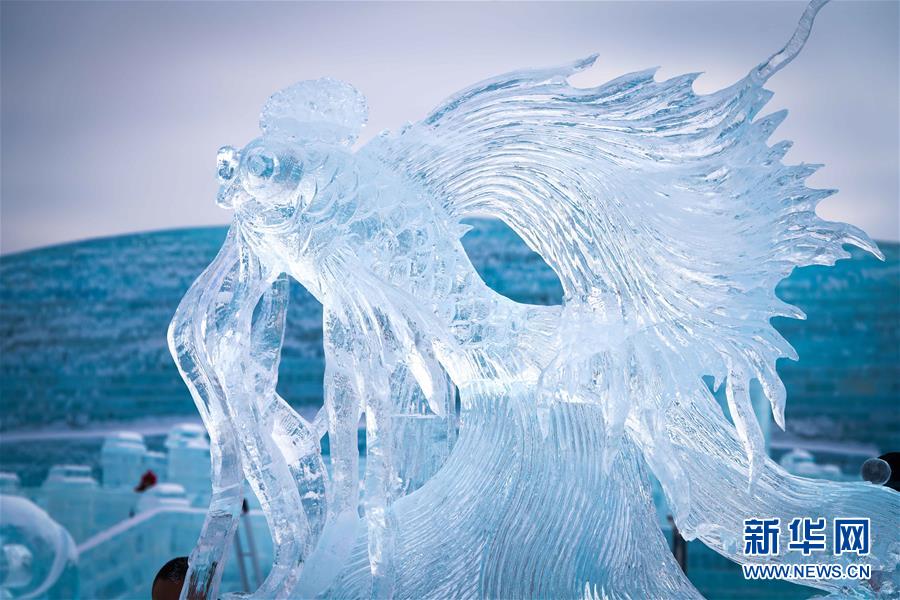 在哈爾濱冰雪大世界內拍攝的冰雕作品(1月8日攝)。新華社記者王松攝