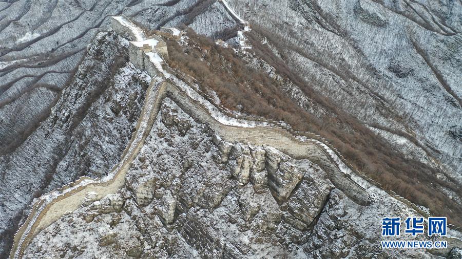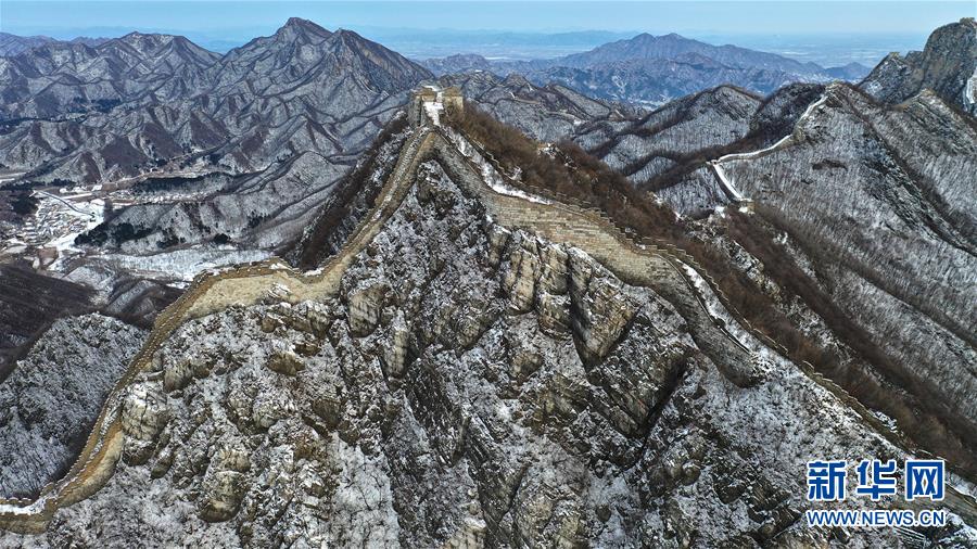 這是1月7日拍攝的北京箭扣長(zhǎng)城雪景(無(wú)人機(jī)照片)。近日,北京迎來降雪天氣。雪后的箭扣長(zhǎng)城內(nèi)外,惟余莽莽,蔚為壯觀。 新華社記者 陳曄華 攝