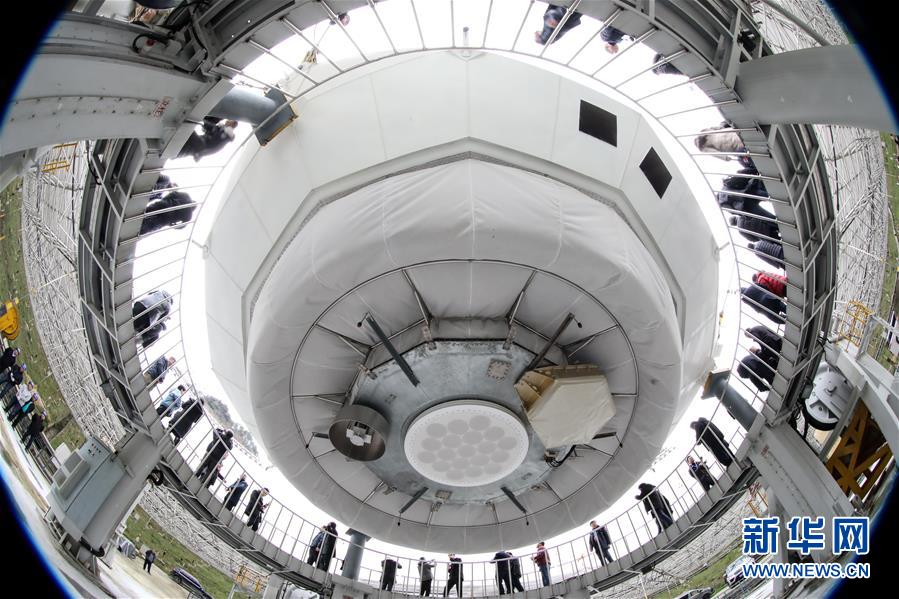 1月11日,專家學者對“中國天眼”進行考察(檢修期間拍攝)。新華社記者歐東衢攝
