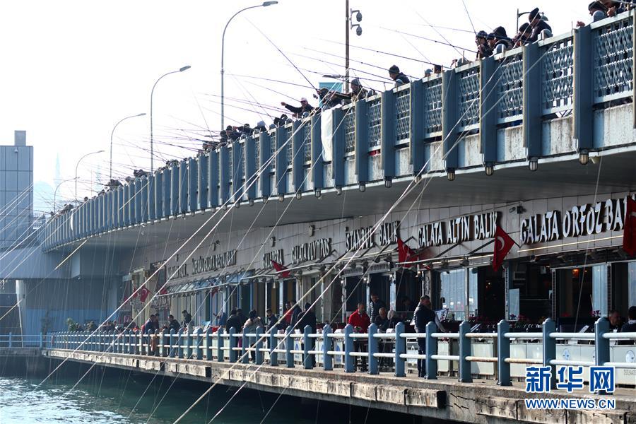 1月14日,在土耳其伊斯坦布爾,人們?cè)诤_叴贯灐?近日,土耳其最大城市伊斯坦布爾的氣溫轉(zhuǎn)暖,不少垂釣愛好者來到海邊,享受冬日的暖陽和垂釣的樂趣。 新華社記者 徐速繪 攝
