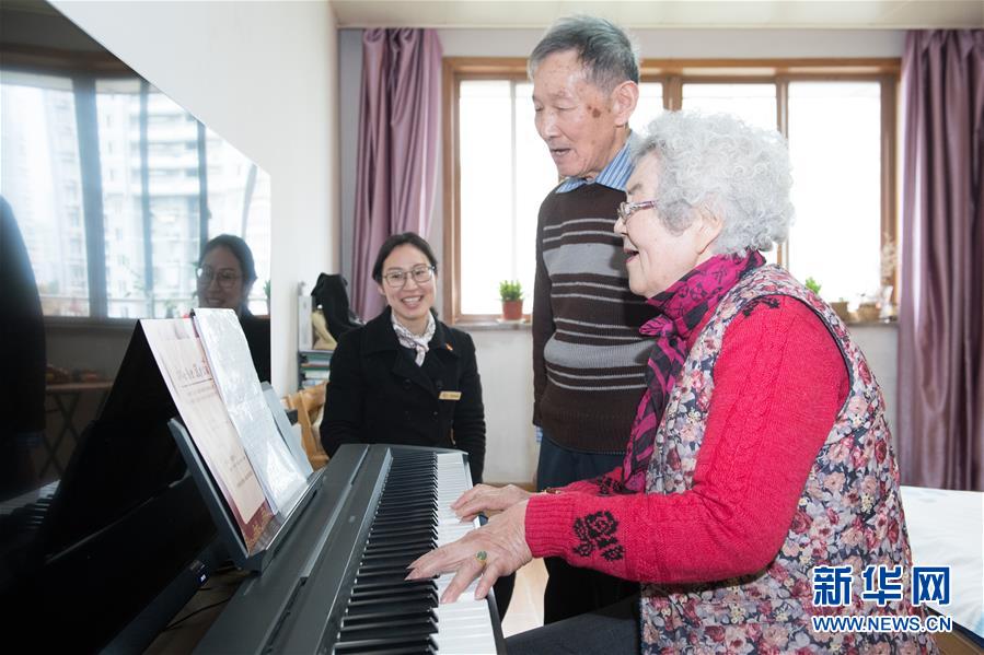 1月17日,王育華(右)和丈夫李偉光(中)在張丹俠的陪伴下彈琴唱歌。新華社記者 翁忻旸 攝