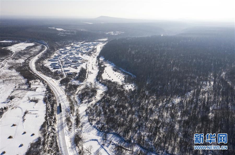 “送水小火車”行駛在林海間,前往送水地點(1月17日攝,無人機(jī)照片)。新華社記者 許暢 攝