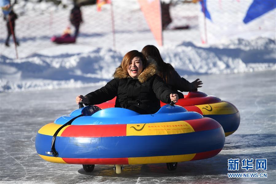 1月18日,游客在新疆天池景區(qū)玩電動碰碰車。新華社記者 沙達提 攝