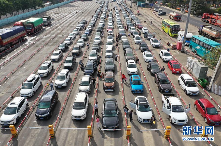 1月19日,車(chē)輛在??谛阌⒏圯喍纱a頭等待登船(無(wú)人機(jī)照片)。 當(dāng)日是春運(yùn)第10天,瓊州海峽進(jìn)入春運(yùn)進(jìn)出港高峰。據(jù)海南港航控股有限公司數(shù)據(jù),截至18日,??谑袃筛劭诖哼\(yùn)累計(jì)進(jìn)出港旅客54.89萬(wàn)人次,進(jìn)出港車(chē)輛13.32萬(wàn)輛次。18日單日進(jìn)出港旅客9.75萬(wàn)人次,同比增長(zhǎng)43.9%,進(jìn)出港車(chē)輛2.3萬(wàn)輛車(chē)次,同比增長(zhǎng)45.5%。  新華社記者 郭程 攝