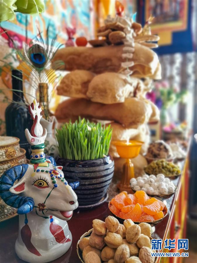 擺放在西藏群眾家中的新年供品(2月24日攝)。  新華社記者 普布扎西 攝
