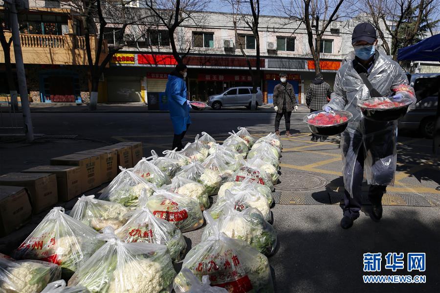 在武漢,下沉花橋社區(qū)的干部在搬運(yùn)居民訂購的草莓(2月20日攝)。 新華社記者 沈伯韓 攝