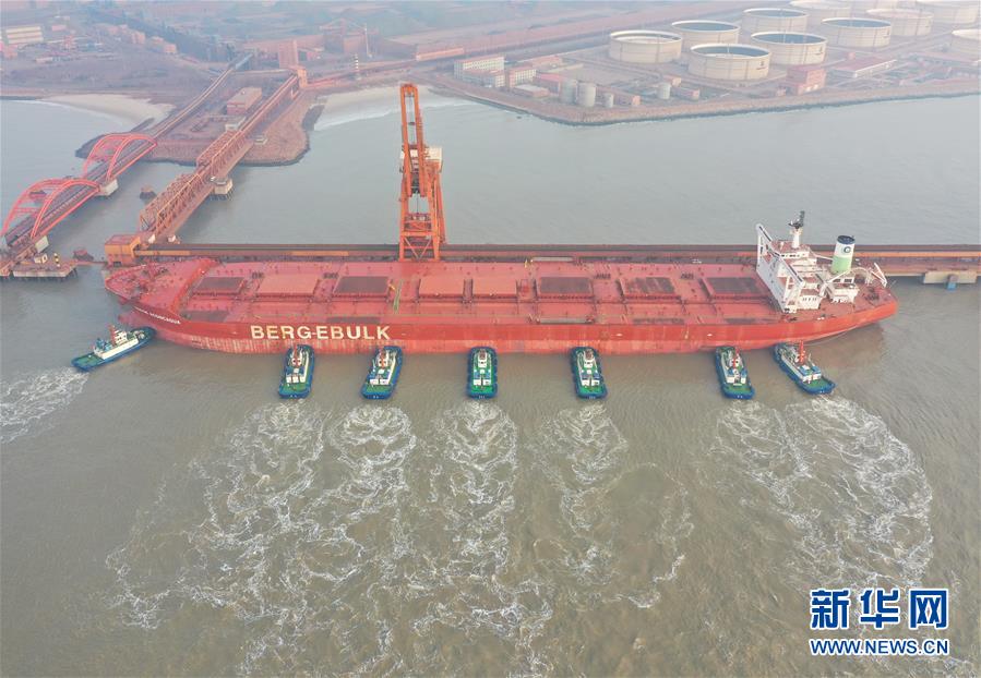 2月24日,一艘40萬噸級(jí)輪船在拖輪的協(xié)助下向曹妃甸港區(qū)礦石碼頭靠泊(無人機(jī)照片)。 連日來,河北省唐山港曹妃甸港區(qū)為有效防控疫情、保證安全生產(chǎn),采取對(duì)進(jìn)入港區(qū)人員檢測(cè)體溫、對(duì)車輛進(jìn)行消殺等嚴(yán)格措施,為海、陸交通暢通和物資運(yùn)輸提供保障。 新華社記者 楊世堯 攝