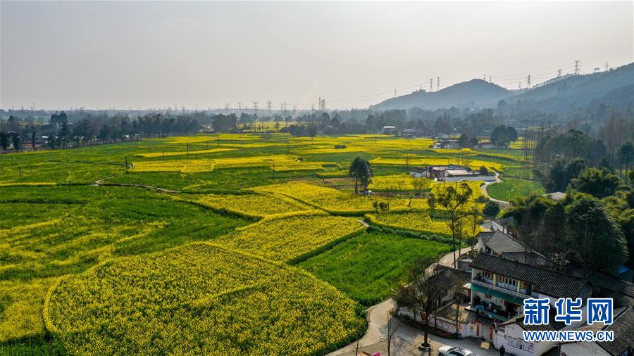 2月25日在四川省崇州市拍攝的油菜花田(無人機(jī)照片)。 新華社記者 王曦 攝