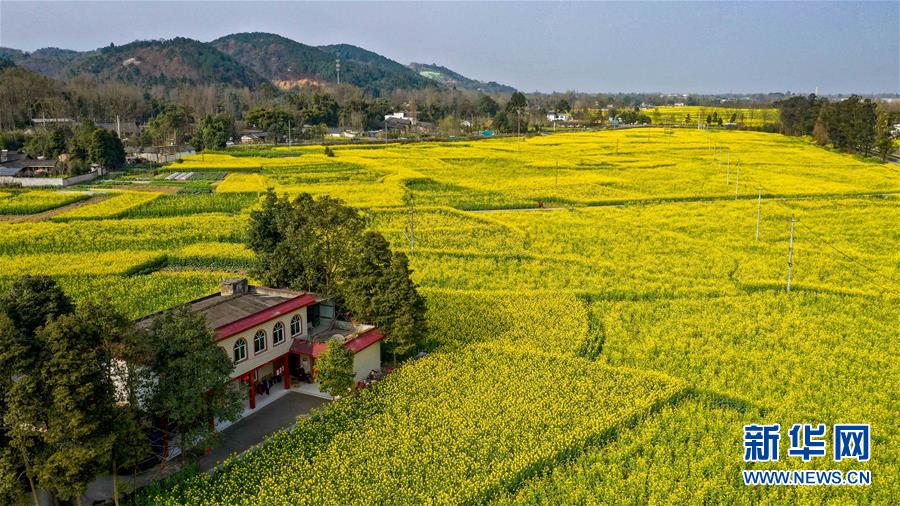 2月25日在四川省崇州市拍攝的油菜花田(無(wú)人機(jī)照片)。新華社記者王曦?cái)z