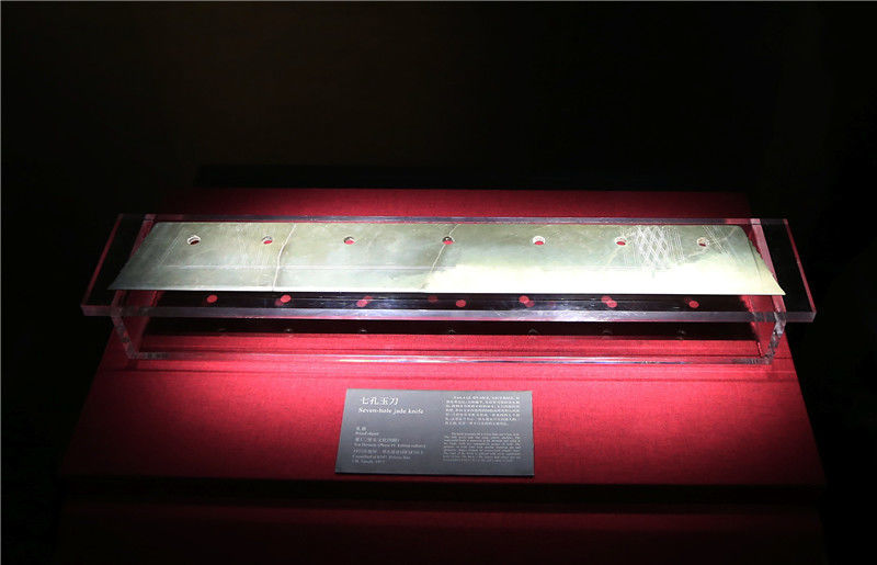 2019年10月19日,河南洛陽,二里頭夏都遺址博物館?!捌呖子竦丁笔嵌镱^夏都遺址出土的最大的玉器。