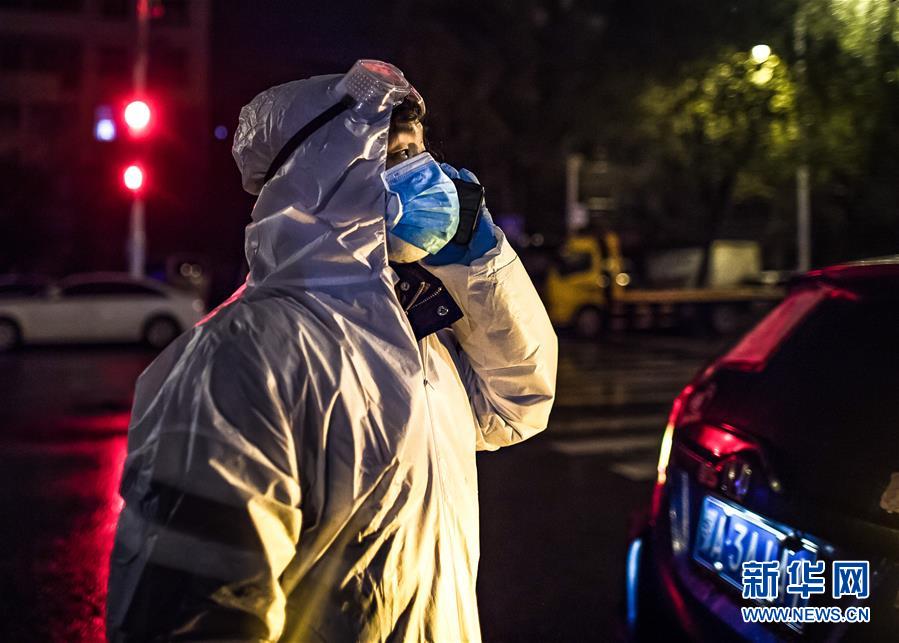 2月29日凌晨,王震到達約定地點后和產(chǎn)婦劉婷家屬聯(lián)系。新華社記者 肖藝九 攝