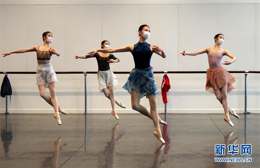 2月29日,在通過網(wǎng)絡(luò)直播的“公益公開課”上,上海芭蕾舞團團長辛麗麗(前右)在指導(dǎo)團員。新華社記者任瓏攝