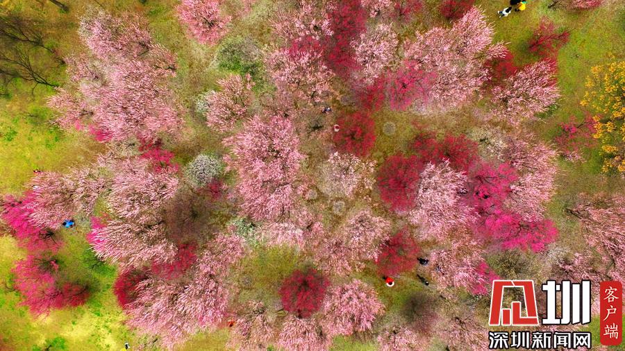 江蘇省揚州市蜀岡西峰生態(tài)公園內(nèi)梅花競相綻放,五顏六色的梅花樹為古城大地披上七彩春裝,美不勝收。
