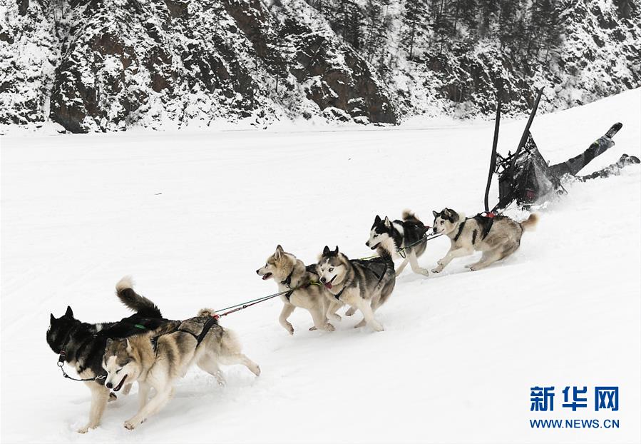 當(dāng)?shù)貢r(shí)間3月4日,俄羅斯克拉斯諾亞爾斯克,當(dāng)?shù)嘏e行10公里狗拉雪橇比賽。(圖片來源:視覺中國)