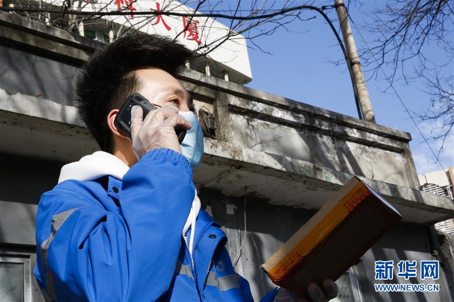3月12日,李杰在運(yùn)送快遞的路上通過(guò)電話聯(lián)絡(luò)客戶。新華社記者張玉薇攝