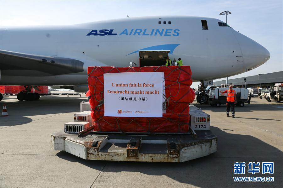 來(lái)自中國(guó)的30萬(wàn)只口罩當(dāng)?shù)貢r(shí)間16日中午運(yùn)抵比利時(shí)列日機(jī)場(chǎng)。 新華社記者 張鋮 攝