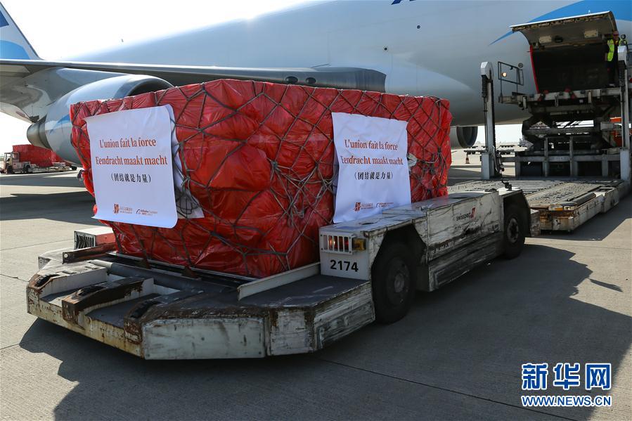 來自中國的30萬只口罩當?shù)貢r間16日中午運抵比利時列日機場。 新華社記者 張鋮 攝