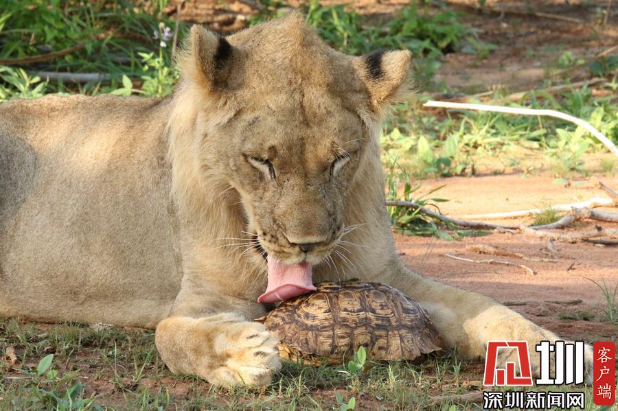肯尼亞獅子捉了只烏龜當“零食” 啃不到肉肉好生氣!