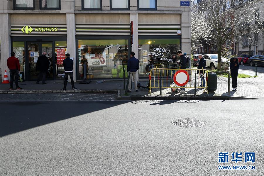 3月18日,顧客在比利時(shí)布魯塞爾的一家商店排隊(duì)購(gòu)物。 新華社記者 潘革平 攝